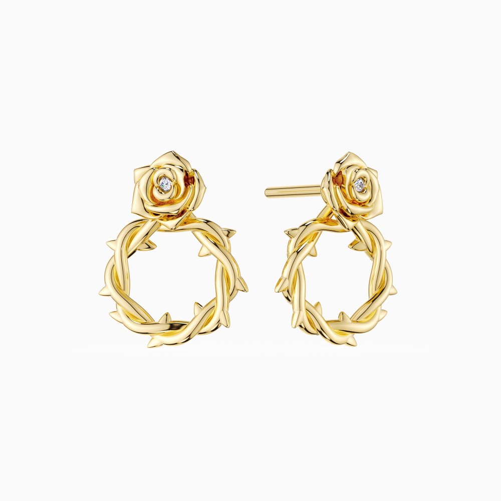 These elegant earrings combine the symbolic strength of the crown of thorns with the delicate beauty of a blooming rose. Each earring offers versatile styling options—wear them together as a harmonious set, or wear just the rose alone for a more subtle look. The crown of thorns, designed to hang from the rose, adds a layer of depth and meaning. The rose, adorned with a sparkling stone, represents resilience and love, while the crown of thorns reminds us of inner strength and perseverance. These earrings are designed to inspire, offering a perfect balance between beauty and the journey of life.